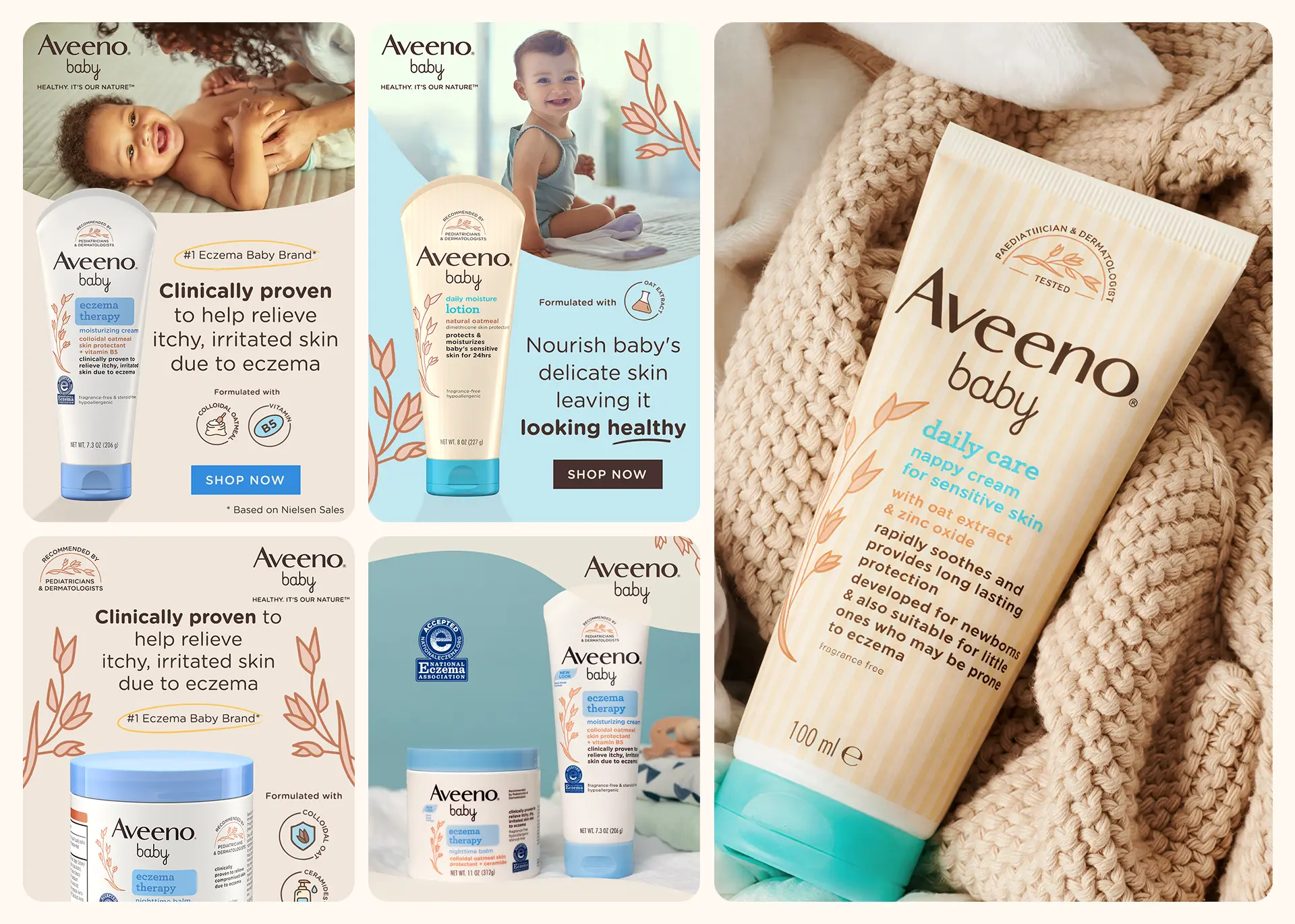 Aveeno Baby needed paid advertising creative that could clearly communicate trust, gentleness, and product efficacy to parents and caregivers. The goal was to create ads that felt calm, credible, and emotionally reassuring while standing out across digital platforms.