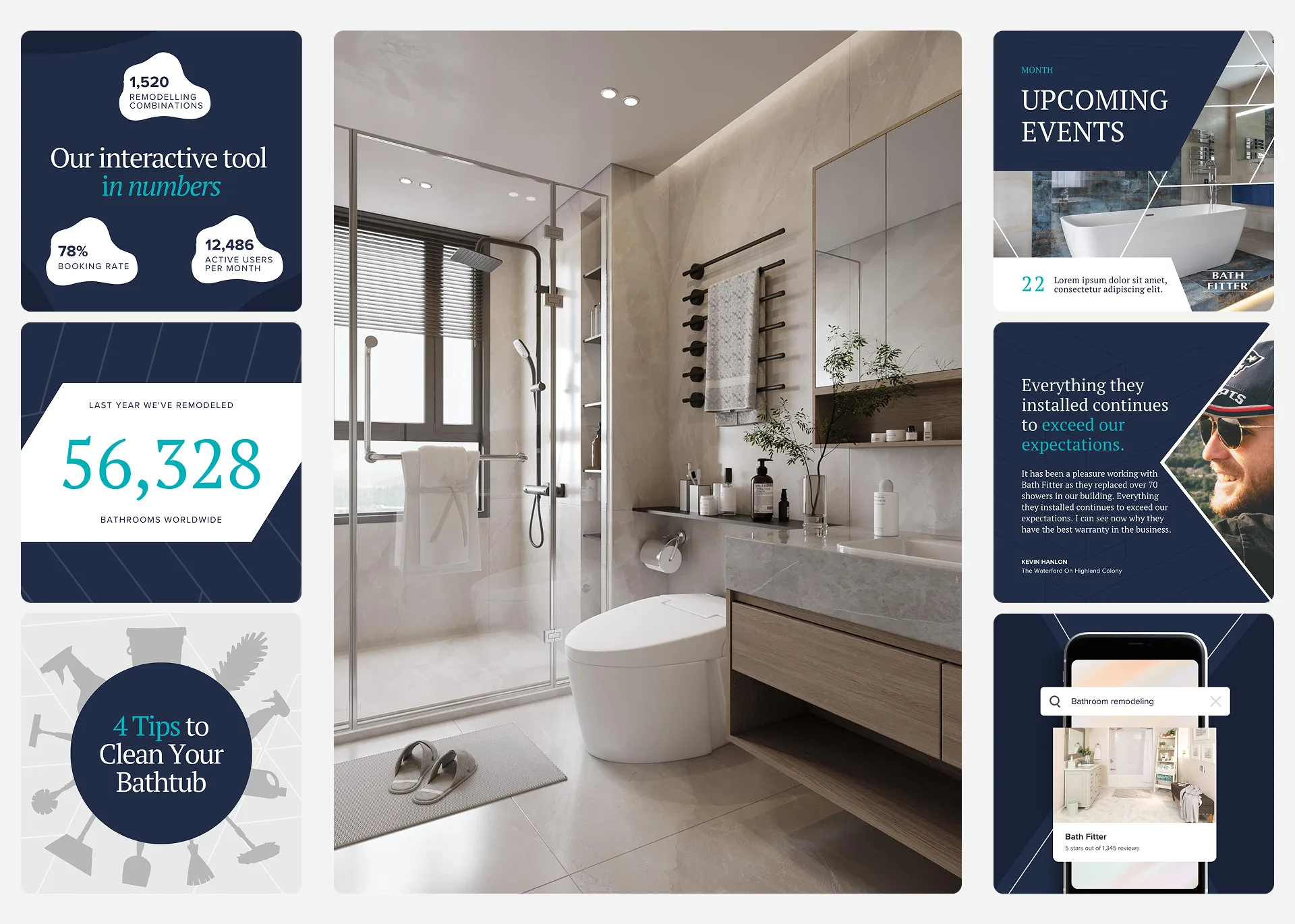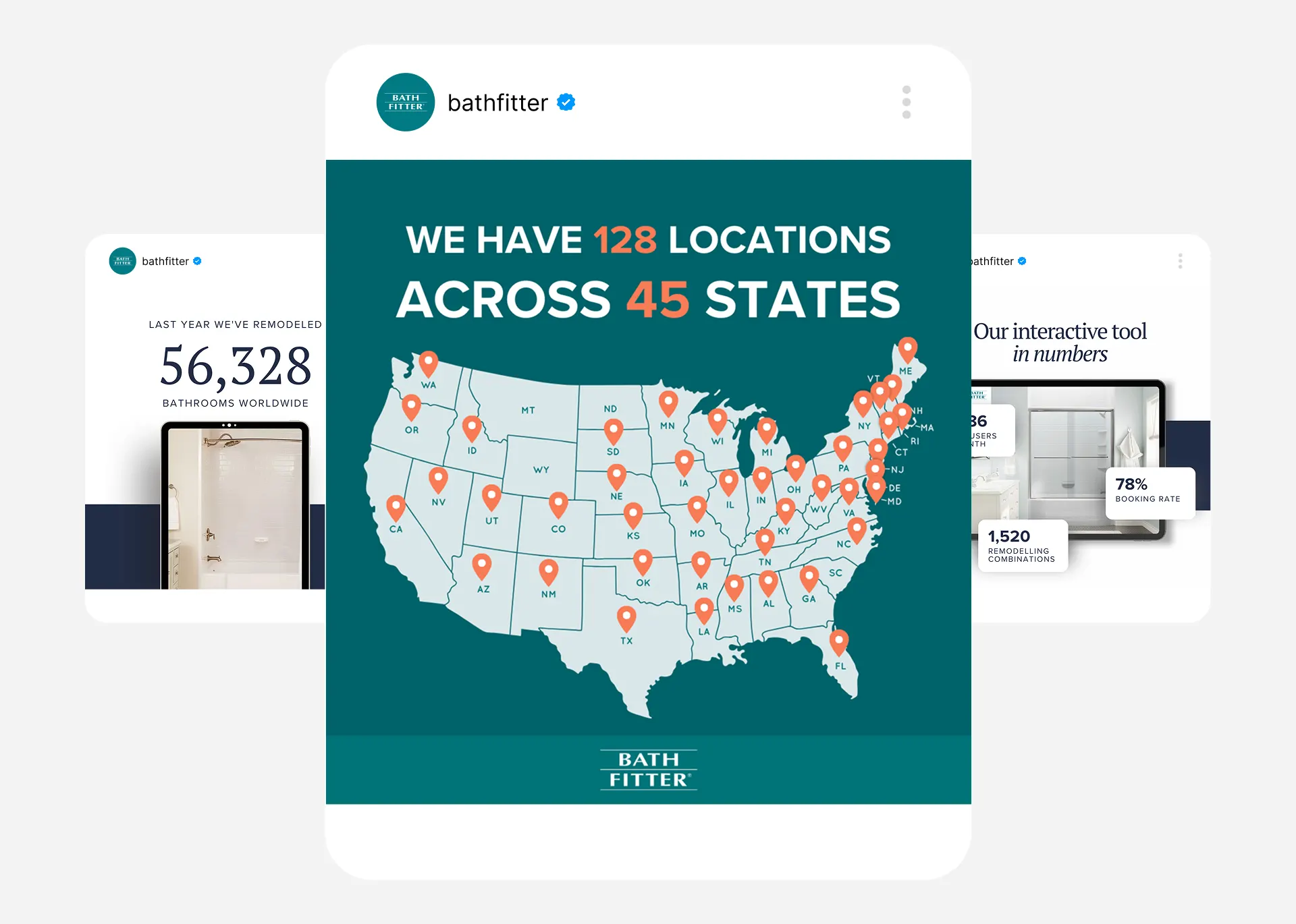 Bath Fitter needed to refresh its social media presence for a new brand direction while supporting both its consumer-facing and business-to-business audiences. The goal was to create a cohesive social system that could clearly communicate value to homeowners and potential partners, while also supporting performance-driven paid campaigns.